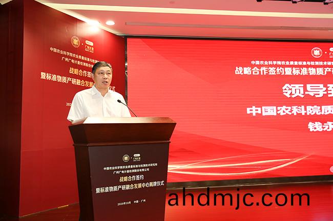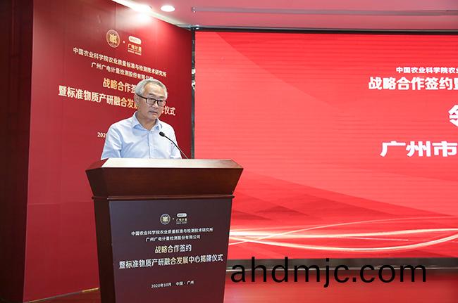 Qian Yongzhong, director of the IQSTAP of ACCA, said in his speech that the two parties jointly set up a "Reference Material Production-Research Integration Development Center", which is intended to give full play to the advantages of both parties, speed up the development of agricultural reference materials, build a platform for the transformation of scientific and technological achievements of agricultural standards and reference materials, and quickly improve the ability and level of agricultural measurement and testing to meet the supporting needs of important inspection and testing technologies such as the quality and safety and origin environment of agricultural products, to ensure the quantity, reasonability and validity of testing results, and to provide strong technical support for the related work of quality safety of agricultural products in China. Later, the Institute of IQSTAP of ACCA will continue to expand the depth and breadth of cooperation with GRGTEST, continue to explore the feasibility of cooperation in research of agricultural product quality testing technology and quality supervision and inspection, transformation of scientific research achievements and other aspects, popularize the brand of " Reference Material Production-Research Integration Development Center" and realize mutual benefit and win-win.