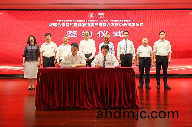 On October 12, Guangzhou GRG Metrology & Test Co., Ltd. (hereinafter referred to as GRGTEST, stock code: 002967) signed a strategic cooperation agreement with the Institute of Quality Standard and Testing Technology for Agro-Products of the Chinese Academy of Agricultural Sciences (hereinafter referred to as IQSTAP of ACCA) and held the opening ceremony of the "Reference Material Production-Research Integration Development Center". This strategic signing between GRGTEST and IQSTAP of ACCA creates a good demonstration of "Production-Research Integration" between state-owned market-oriented technical service agencies and national institutes. It also marks the formal entry of GRGTEST into the reference material market and its extension to the upstream of the inspection and testing industrial chain. And it enhances the core competitiveness of enterprise through concentric and diversified development, and gives full play to the industrial convergence effect to better serve the construction of great power of quality. This is also GRGTEST's another expansion of its business landscape following the layout of EHS evaluation and consulting market.