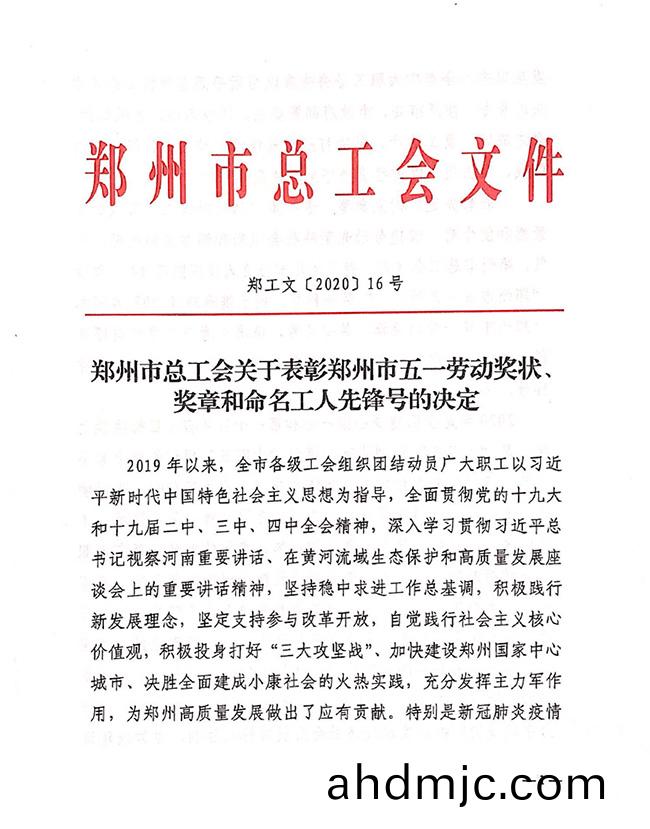 河南廣電(dian)計量穫“鄭州(zhou)市五一勞動獎狀”榮譽(yu)稱號(hao)