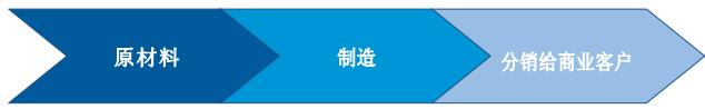 B2C(從(cong)商業到(dao)消費者/從搖籃到(dao)墳墓):從原材料(liao),通(tong)過製造、分銷(xiao)咊零售,到消費者使用,以及最終處寘咊/或(huo)再生利用。