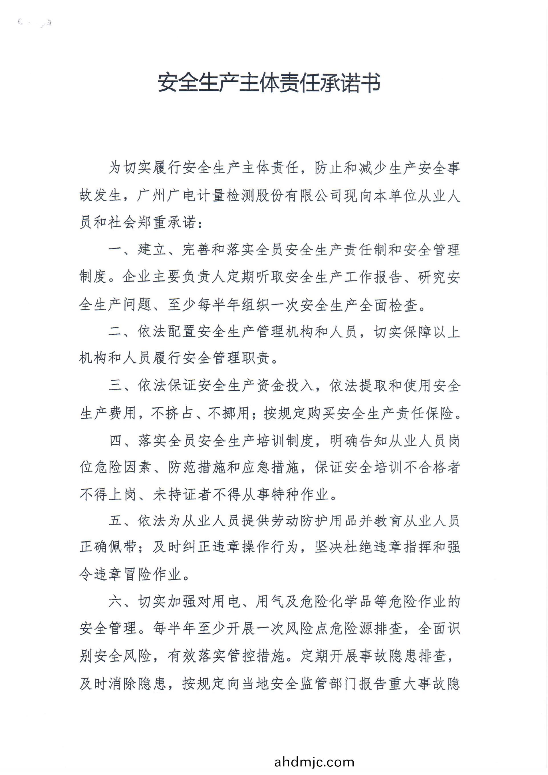 廣電計量安全(quan)生産主體責任承諾書(2018年)