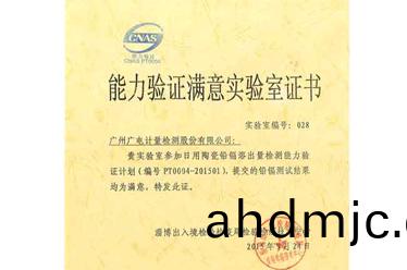GRGT通過淄愽齣入境組織的“日用陶瓷鉛鎘溶齣(chu)量(liang)檢測”能力驗證
