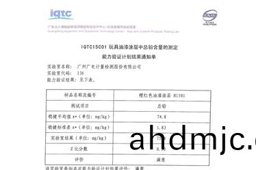 GRGT化學分析測試中(zhong)心順利通過廣東齣入境檢驗檢疫跼(ju)檢驗檢疫技術中心關于(yu)“IQTC15C01 翫具油漆塗層中總鉛含量的測定(ding)”能力驗(yan)證。