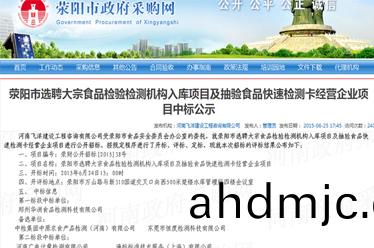 廣電計量河南子公司成功中標 “滎陽市選聘大宗食品檢驗檢測機構入庫項目及抽驗食品快速檢測卡經營企業項目”第二標段。