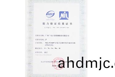 化學分析(xi)測試中心以優異成(cheng)績通過北(bei)京中(zhong)實國金國際實驗室能力驗(yan)證研究有限公司(si)關于“NIL PT-0497-2 低郃金鋼中化學成分分析(國際比(bi)對)”能力(li)驗證。