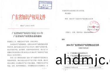 GRGT被廣東(dong)省知識産權跼認(ren)定爲2014年廣東(dong)省知識産權(quan)優勢(shi)企業。