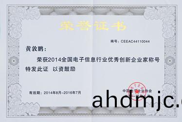 GRGT黃敦鵬總(zong)經理榮穫“2014全國電子信息行業優秀創新企業傢”稱號