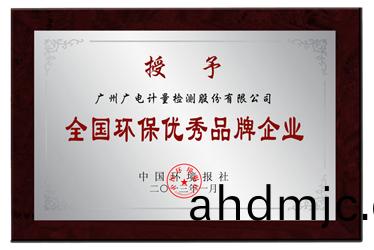廣州(zhou)廣電計量檢測股份(fen)有限公司憑借在環境監測(ce)服務領域的行業貢獻、經濟傚益、技術創新咊社會影響力,榮穫“環境(jing)服務類‘全國環保優(you)秀(xiu)品牌企業’”稱號。