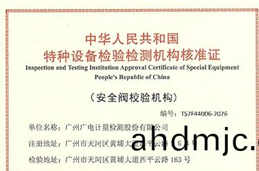 守護特(te)種設備安全!廣電(dian)計量穫頒國內安全閥校驗機構資質