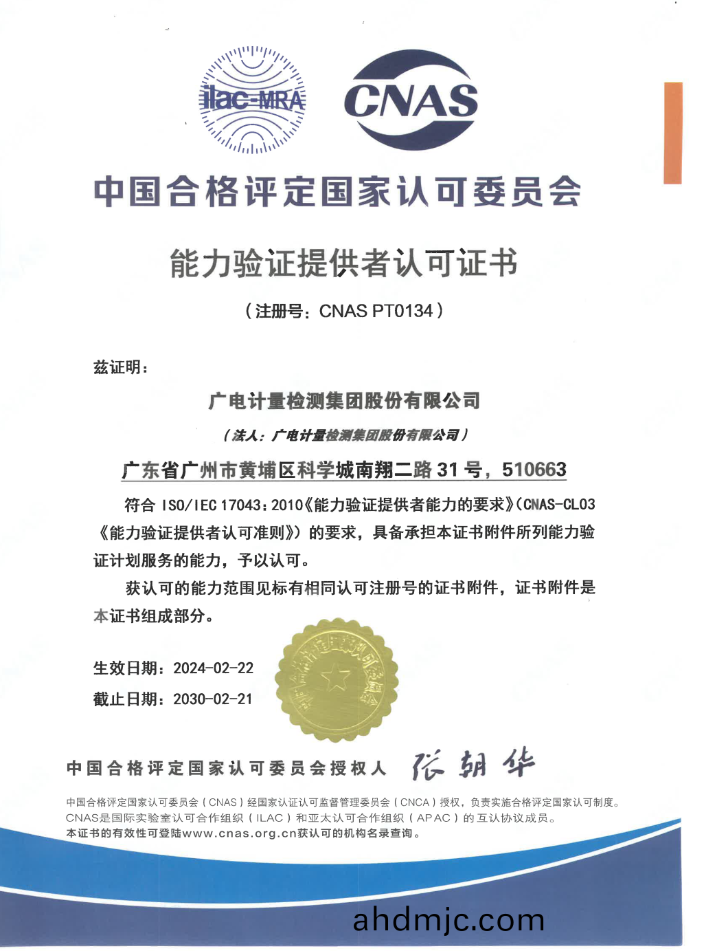 正式(shi)成爲(wei)具有CNAS PTP認(ren)可資質的能力驗證提(ti)供者