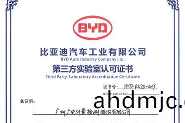 廣電計量穫比亞(ya)迪(di)CNAS全項目第三方實驗室認可