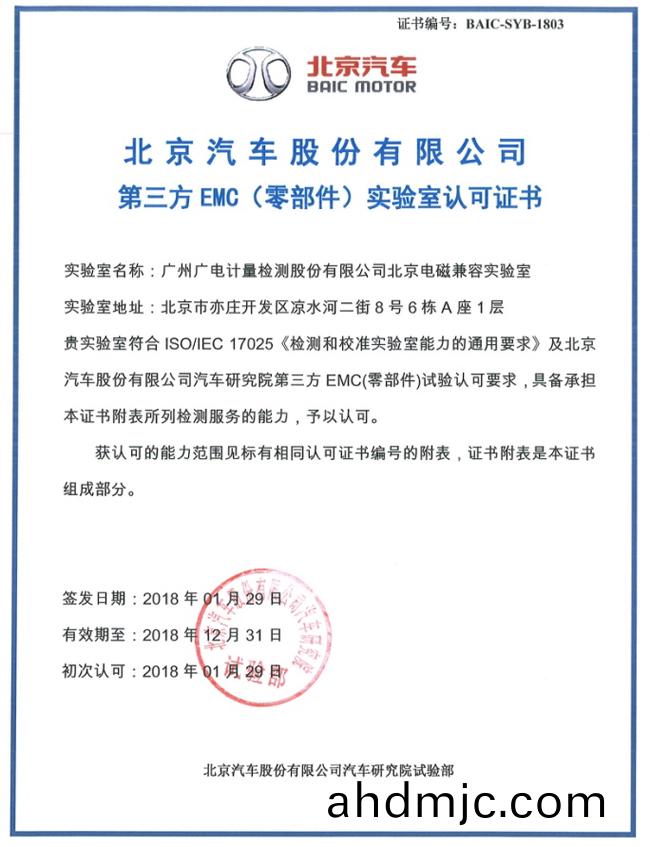 北京檢測基地電磁兼容實驗室(shi)穫得北京汽(qi)車第三方EMC(零部(bu)件)實驗室(shi)認可