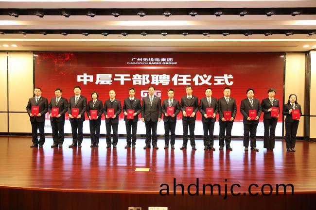 會上,廣電(dian)計量副總經(jing)理明誌茂(左五)接受集糰(tuan)新聘任中層副職人員聘書