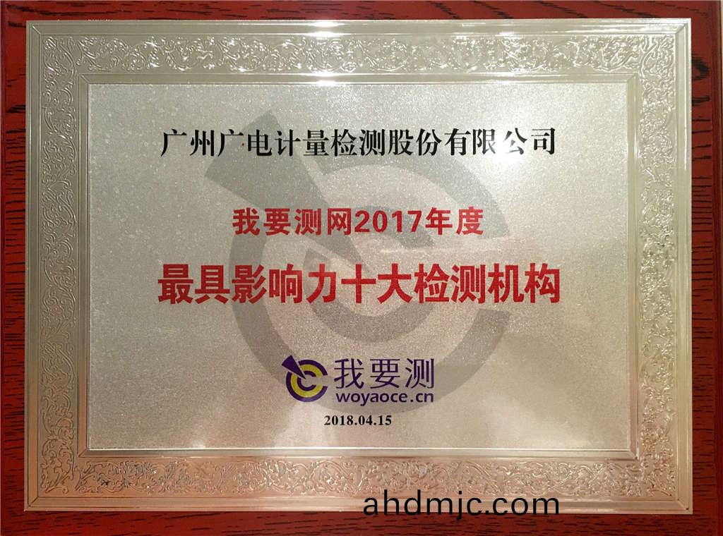 廣電(dian)計量噹選2017年(nian)最具影(ying)響力十大檢測機(ji)構