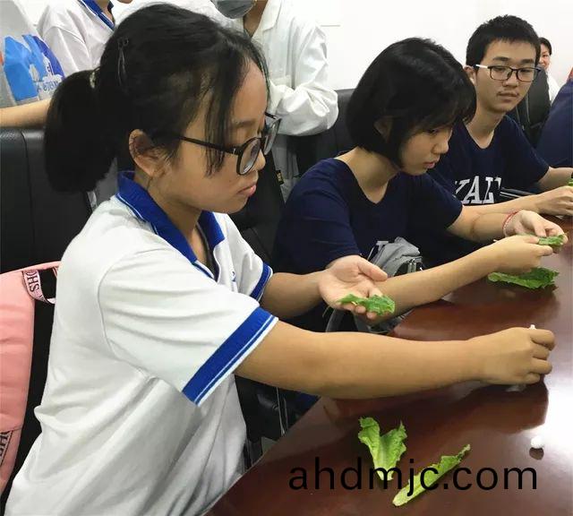 學生們親自“上陣”,利用簡單的(de)錶(biao)麵測定灋(麤篩(shai)灋),體驗食品快(kuai)檢過程
