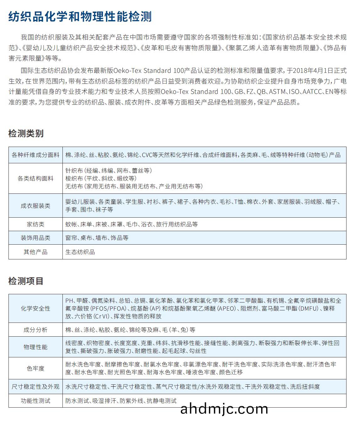 廣電計量紡織、服裝産品及相關配(pei)套産品(pin)一站式檢(jian)測服務方案