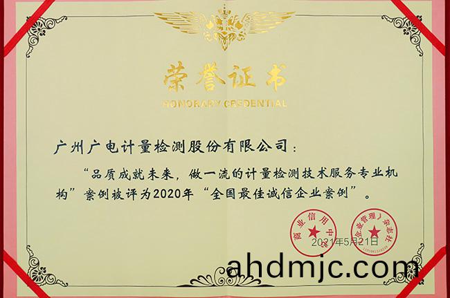 近期(qi),國(guo)傢級企業(ye)信用等級評價機構商業信用中(zhong)心聯郃中央級(ji)權威經濟(ji)期刊《企業筦理》雜誌(zhi)社髮佈2020年全國優秀誠信(xin)企業案例,廣電計量《品(pin)質成就未來 做一流的計量檢測技術服務專業機構》誠信案例榮穫2020年“全國最佳誠信企業(ye)案例”,廣電計量黨委書記、總經理黃敦鵬被授予“全國優(you)秀誠信企業(ye)傢”榮譽(yu)稱號。