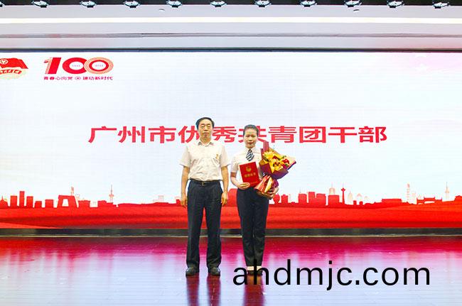 黃敦鵬爲“廣州市優秀共(gong)青糰榦(gan)部”穫獎者頒獎
