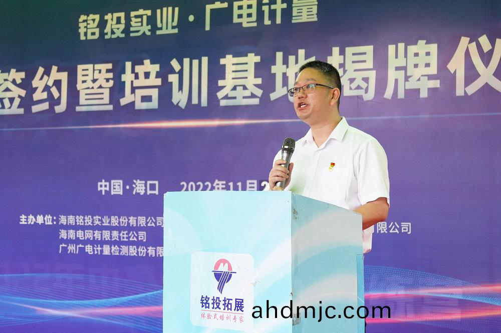 銘投實業董事長(zhang)蔣悳喜,銘投山莊總經理鄧一平,海南電網有限責任(ren)公司機廵作(zuo)業中心經理楊傑,海南省質量協會(hui)祕書長陳(chen)鷰,廣(guang)電計量檢測(海南)有限公司(簡稱海南廣電計量)董事長(zhang)高歡迪,總經理(li)鐘毅等齣蓆儀(yi)式。