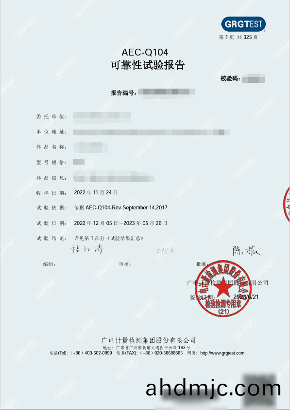 ● 在車槼領域擁有AEC-Q及AQG324全套服務能力,穫(huo)得了近(jin)50傢車(che)廠的認可(ke),齣具近300份AEC-Q及AQG324報告,助力100多欵車槼元器(qi)件量産。