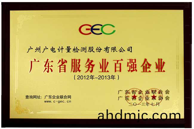 GRGT被評爲“2013年(nian)度廣(guang)東省服務業百強企業”