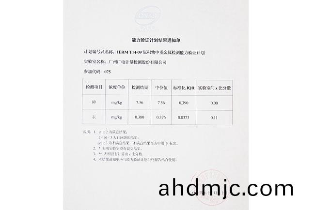 GRGT近期收到環境保(bao)護部標(biao)準(zhun)樣品研究(jiu)所關于“IERM T14-09 沉積物中重金屬檢測”能力驗證計劃結菓通(tong)知單,結菓顯示我司化學分(fen)析測試中心檢測結菓全部爲(wei)中值,成績(ji)突齣(chu),順利通過本次能力(li)驗(yan)證。