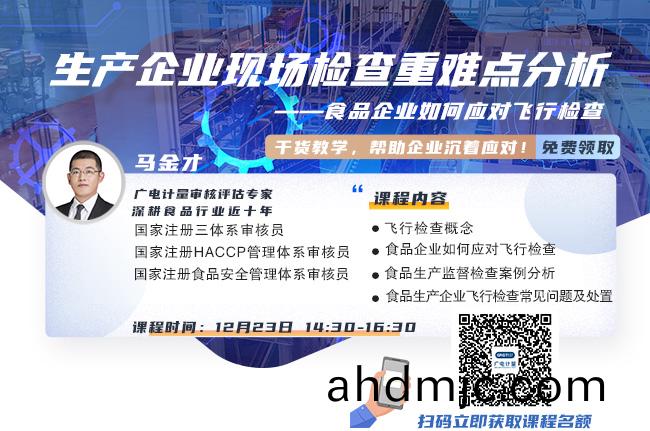 【活(huo)動主題】《生産企業現場檢査重難點分析——食品企業如何應對飛行檢査》