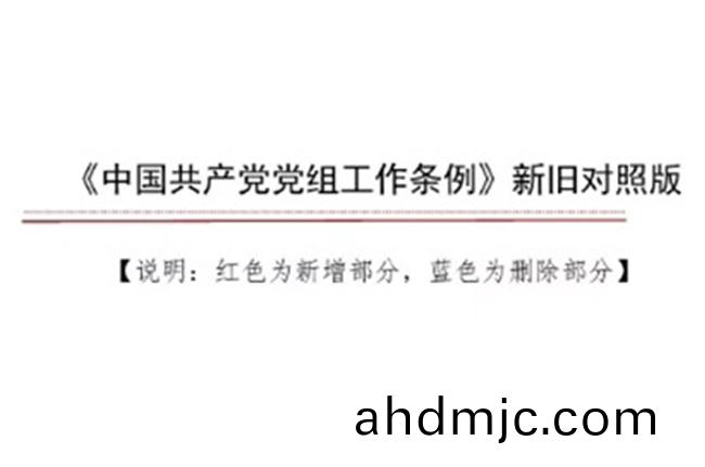 《中(zhong)國共産黨黨組工(gong)作條例》新舊對炤版