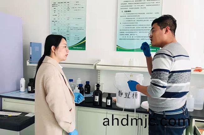 攻關組組員利用休息時間進行採測用純水製備咊(he)檢驗