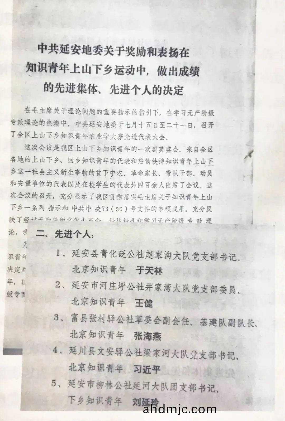 延安地(di)委錶彰上山下鄕運動中的先進集體咊箇人,其中(zhong)就有時任樑傢河大隊黨支部書記習近(jin)平。(來源(yuan):央廣網)