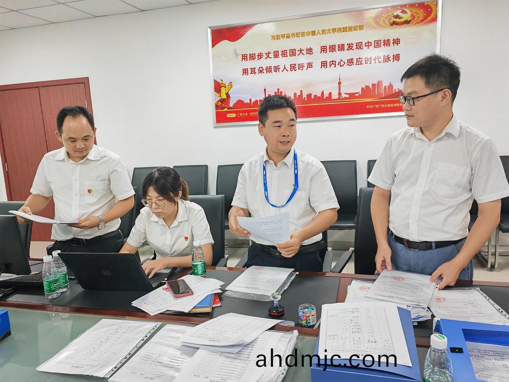 龍陽(右二)帶領衕事加班保障項目進度