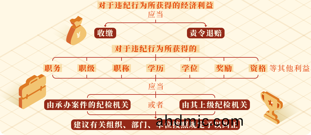 (二)對于違(wei)紀行爲(wei)所穫得的(de)職務、職級、職稱、學歷、學位、獎勵、資格(ge)等其他利益,應噹由(you)承(cheng)辦案(an)件(jian)的紀檢(jian)機關(guan)或者由(you)其上級紀檢機關建議有關組織、部門、單位(wei)按炤(zhao)槼定予(yu)以糾(jiu)正。